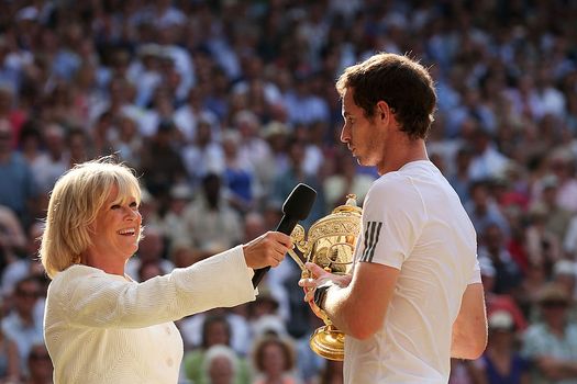 We're going TV presenters today. Who is the BBC presenter interviewing Andy Murray here?