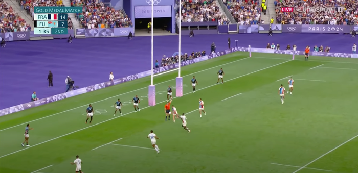 What happened next when France star Antoine Dupont had the ball in this position in the Rugby Sevens gold medal match against Fiji?