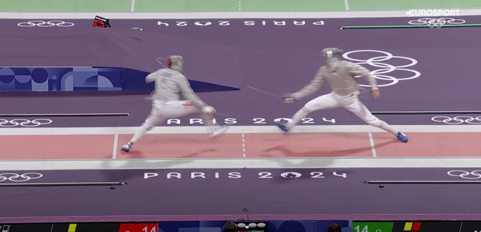 Georgia's Sandro Bazadze, the world number one, was level 14-14 with Mohamed Amer of Egypt in this last-16 men's fencing match.