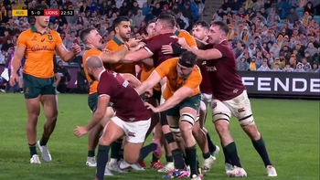 At least 20 players were involved in a mass scarp between the two sides around the 20th minute, as Australia’s players objected to an altercation between the Wallabies’ Will Skelton and a number of Lions players.
