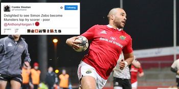 Delighted to see Simon Zebo become Munsters top try scorer – poor @AnthonyHorgan ! 😡