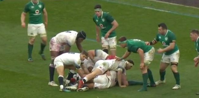 CJ Stander's boot comes off, Martin Itoje throws it away. Stander went on to hit three rucks wearing only one boot. #SixNations #sixnations2018 #GrandSlam #ENGvIRL #StParticksDay pic.twitter.com/AYFGrkMKAz