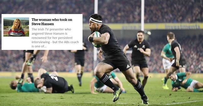 In a piece entitled ‘Meet Clare MacNamara, the woman who took on Steve Hansen’, for which no byline has been attributed, the paper lauds Hansen as ‘one of the few coaches not to fall into her trap’.