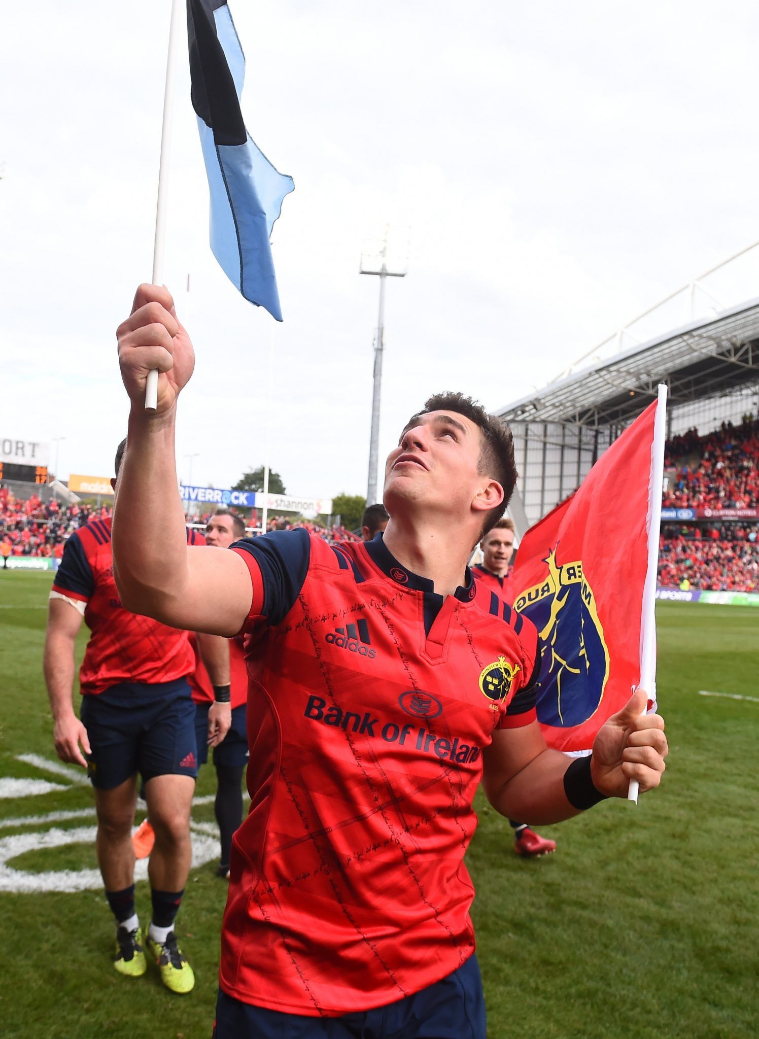 Ian Keatley flies the flags of Anthony Foley's beloved Shannon and Munster. (Credit: Sportsfile)