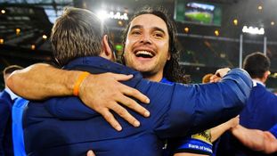 Rob Kearney and James Lowe enjoy the moment after Leinster’s Guinness PRO14 Final win over Glasgow Warriors. (Photo by Ramsey Cardy/Sportsfile)“I related it to Liverpool. Such a good team but if they don’t win a trophy, they’ll see it as a bad season even though they’re such a good team. We learned a lot from Newcastle, we probably got stuck in fourth gear.