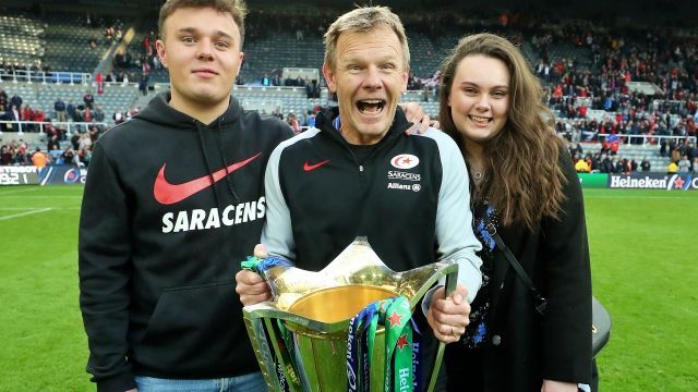 Mark McCall, the Saracens director of rugby, celebrates with his children after their victory during the Champions Cup Final match between Saracens and Leinster at St. James Park on May 11, 2019 in Newcastle upon Tyne, United Kingdom. (Photo by David Rogers/Getty Images)