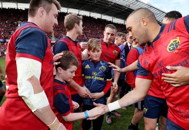 Simon Zebo shakes the hand of Dan Foley, son of the late Anthony Foley 22/10/2016