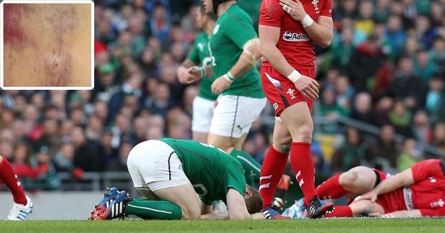 To mark Ireland’s Six Nations game against Wales on Sunday, O’Driscoll saw fit to share a picture exhibiting the mark left when he collided with the ground after the tackle and it looks absolutely horrible.
