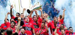 LONDON, ENGLAND - MAY 02: The Toulon team celebrate their victory during the European Rugby Champions Cup Final match between ASM Clermont Auvergne and RC Toulon at Twickenham Stadium on May 2, 2015 in London, England. (Photo by Stu Forster/Getty Images)