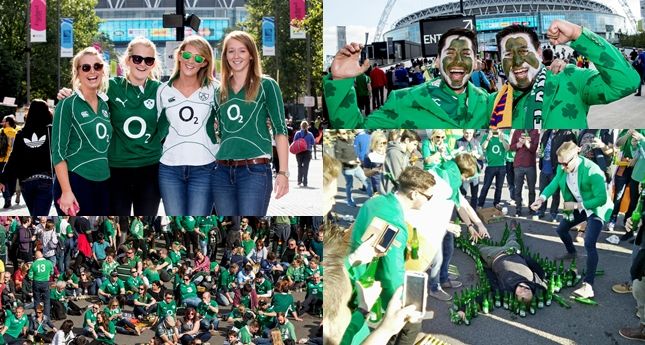 Pretty much a home game for Ireland here at Wembley. Green everywhere #IREvROM #RWC2015 #IRE pic.twitter.com/qJog7JU4U4