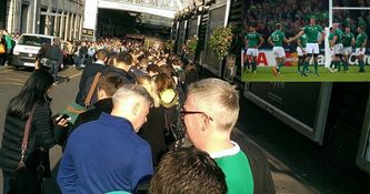 The queue for Cardiff at Bristol train station.#IREvFRA pic.twitter.com/jufNmvPBwL