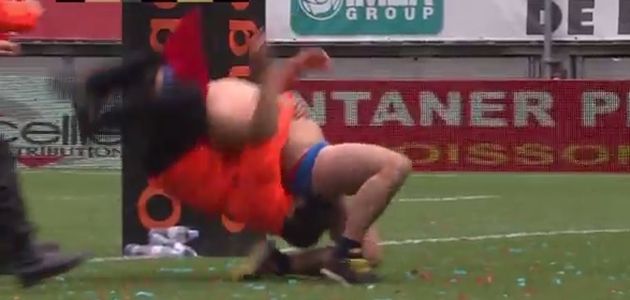 Grenoble were on course for a vital Top 14 victory over Toulouse when a rugby supporter under-dressed as Superman stole on the pitch.