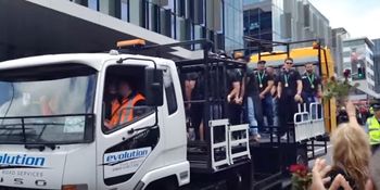 After the players and coaching staff were reunited with family members, and friends, they got back onto a bus that took them to downtown Auckland for their parade. Crowds were out in force in the city of sails.