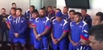 At their training base in Brighton, the Samoan rugby team welcomed the former Rugby World Cup winner in extraordinary fashion with a rousing rendition of the hymn Fa’afetai i le atua.
