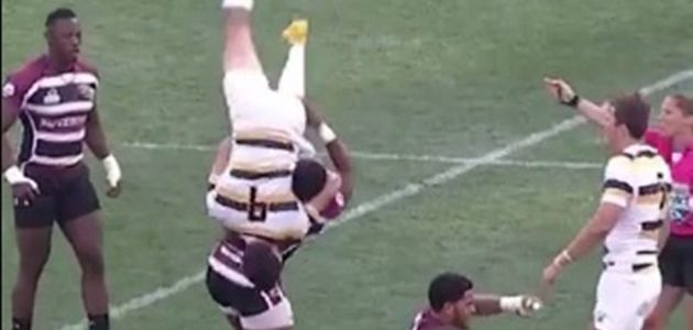 This United States college rugby sevens player mimicked North’s fireman’s lift before taking it several steps too far.