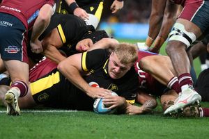 BRISBANE, AUSTRALIA - JULY 19: Archie Griffin of Wales scores a try during the match between Queensland Reds and Wales at Suncorp Stadium on July 19, 2024 in Brisbane, Australia. (Photo by Matt Roberts/Getty Images)