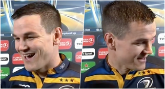 Jonathan Sexton was joined by an unexpected visitor as he spoke after his side's win at the Aviva. #LEIvWAS https://t.co/jJtgFM3TZj