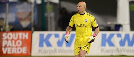 Pic: Marcus Hahnemann announces his retirement. From a treehouse. Holding a bottle of bourbon