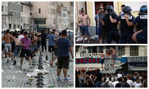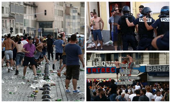 PIC: English fan kicked to the ground and thrown into the sea as trouble flares in Marseille