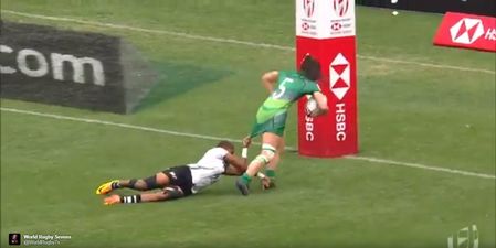 Watch: Ireland winger drags Fijian defender to the try line to score ridiculous try