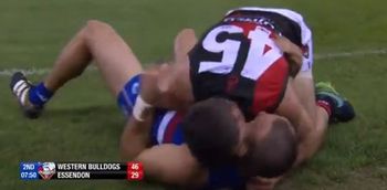 Video: Aussie Rules player nearly gets head taken clean off by flying arse