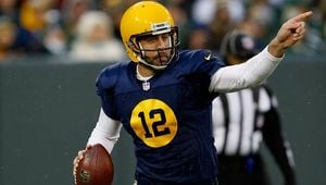 GREEN BAY, WI – NOVEMBER 16: Quarterback Aaron Rodgers #12 of the Green Bay Packers points while playing against the Philadelphia Eagles during the second quarter of the game at Lambeau Field on November 16, 2014 in Green Bay, Wisconsin. (Photo by Mike Zarrilli/Getty Images)