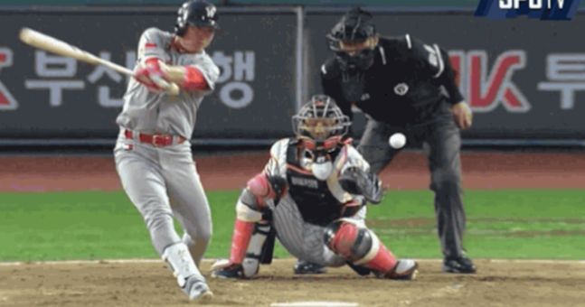 During the third inning of yesterday’s game between SK Wyverns and the Lotte Giants, this official fell victim to the most wayward foul ball that has ever been.