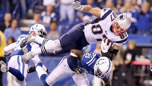Jonas Gray might have scored four touchdowns for the New England Patriots tonight in the 42-20 win over the Indianapolis Colts but the best score of the night was this outrageous run by Rob Gronkowski.
