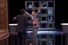 The American Football fun-fest challenge involves hoiking balls through panes of Perspex glass with a brass band trumpeting or lampooning your every effort. McConaughey had previously beaten the Tonight Show host in their two previous encounters. The Oscar-winner started off in fine fettle before cockiness led to Fallon’s stunning comeback.