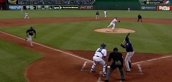 Top of the second innings with the bases loaded, Hunter reckoned he could set off for home and, due to Jeremy Guthrie’s slow pitching action, steal a run for his Kansas City Royals side.