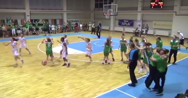 England thought they only had to lose by 7. Didn't know #BUL win meant winner went to 1/4s. Celebration at buzzer, awkward🙈 #FIBAU16Europe