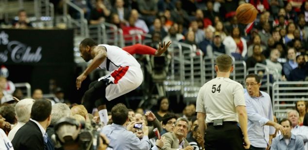 Washington Wizards point guard John Wall, perhaps the fastest player and certainly one of the most athletic, ended up hurdling his way over several rows of fans as he pursued a ball headed for the sidelines as Washington hosted the Portland Trail Blazers last night.
