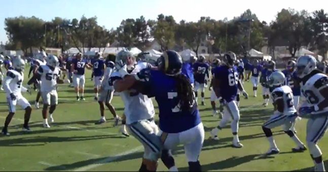 Huge fight at Cowboys-Rams practice… @NBCDFW pic.twitter.com/Jvk3P0XvrA — Pat Doney (@PatDoneyNBC5) August 19, 2015