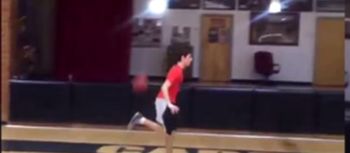 We shudder to think of the number of takes that it required to get his alley-oop perfect because there’s no way in hell that this happened first time.