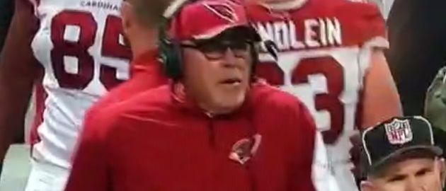 The Cardinals head coach, realising that there was no need to throw his flag to challenge a play that resulted in a turnover, motioned for one of his players, Lyle Sendlein to grab the flag before the referee noticed.