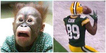 Rodgers told his team-mates what to do, directing tight end Cook to leg it towards the left sideline. He then lasered him the ball, Cook caught it and the kicker did his thing. See it below. The catch is grand, like. But it was thrown at his chest. If he dropped it you would be sacking him.