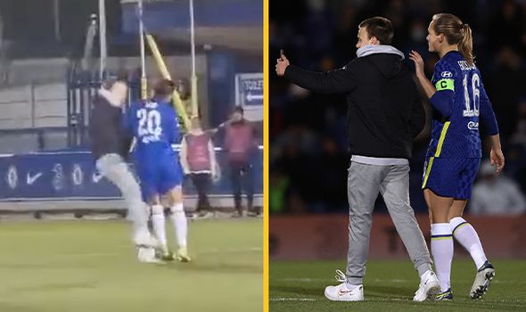 The man – who entered the field of play during the closing stages of the goalless draw at Kingsmeadow – briefly interrupted the match as he appeared to try and take photos with Chelsea captain, Magda Eriksson.