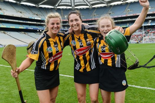 Name the Kilkenny camogie legend, wearing No.10, who is flanked by Grace Walsh and Laura Murphy here.