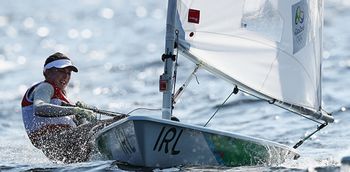 Team Ireland’s Annalise Murphy is leading the pack in the women’s laser radial.