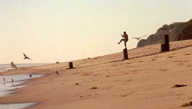 What move does Daniel spot Mr Miyaki practising at the beach?