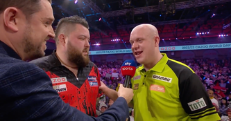 The St Helens player was reluctant to praise himself in his post-match interview as world champion, and that was when his opponent Michael van Gerwen came over to do it for him.