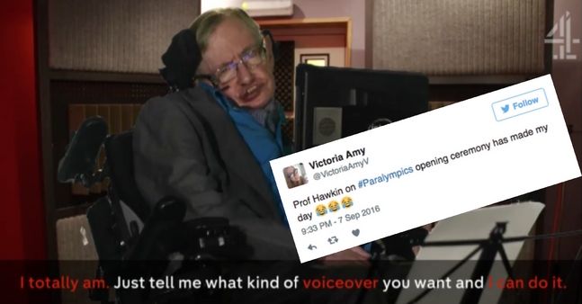 Prof Hawkin on #Paralympics opening ceremony has made my day 😂😂😂
