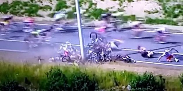 There was a spectacular crash midway through the third stage of the Tour de France this afternoon that has, thus far, ended three riders’ involvement and left many more injured.