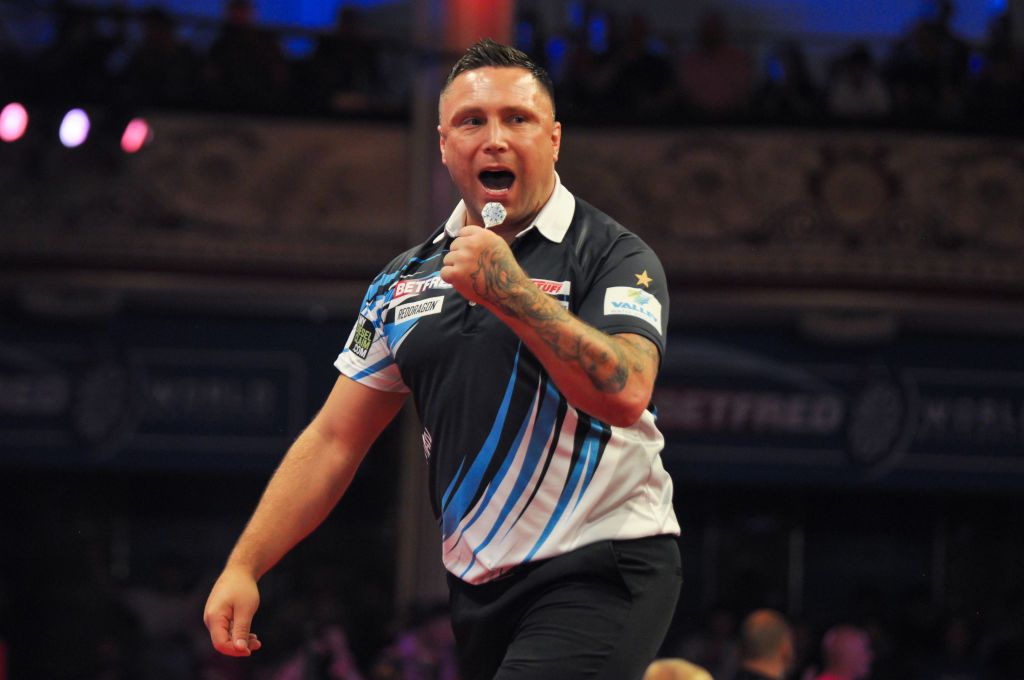 BLACKPOOL, UNITED KINGDOM - JULY 15: Gerwyn Price of Wales during Day 1 of the 2023 Betfred World Matchplay at the Winter Gardens on July 15, 2023 in Blackpool, United Kingdom (Photo by Pieter Verbeek/BSR Agency/Getty Images)
